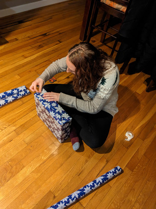 Sarah is jovially known in her family as being the "best" at Christmas. She loves the gift-giving spirit of the season and pays close attention to what her loved ones say they are wishing for or what items they pick up at stores but won't get for themselves throughout the year, keeping notes so she can have the perfect surprise for them come Christmas. Christmas has been special to Sarah as long as she can remember, not because of any religious affiliation, but because of the magic she felt as a child during that time of year. She tries to capture that feeling as closely as possible as an adult and share it with her family. Hunter grew up with less emotional attachment to the holiday, but he has enjoyed watching Sarah's passion for it. Each Christmas Eve that they've spent together, Sarah has snuck away to prepare stockings for him, her sister, and her mom, which she puts by the tree after everyone has gone to sleep. Hunter played a supporting Santa role their first Christmas together, helping Sarah's sister, Emma, pick out and hide a bike as a gift for their mom, Bonnie. He helped set the bike up by the tree the night before Christmas, only to wake up the next morning to find out that Bonnie had tested positive for COVID. They ended up celebrating Christmas on New Year's Day that year, something they'll always remember.