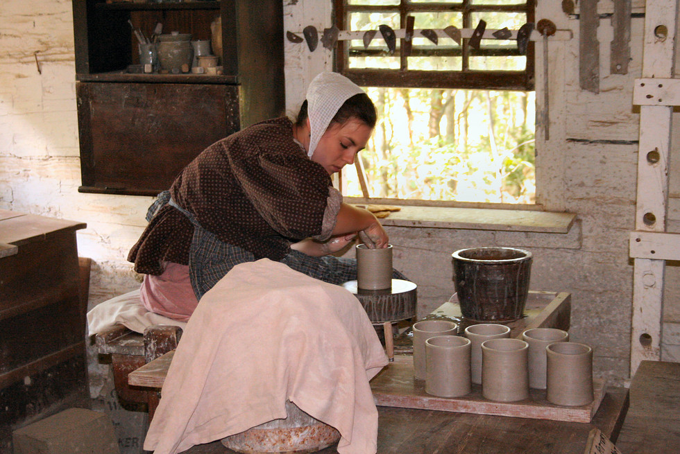 Hunter is finding joy in the goats at Conner Prairie. Photos (taken by other people) of some of the places they visited, including the Carpenter's shed, the Potter's shop, the old weaving loom, and the house of William Conner.