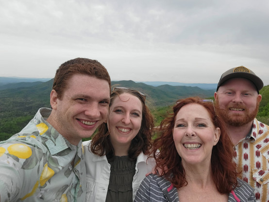 After Hungry Mother, they visited Wyrick Springs, a natural spring where Sarah's mother played in the stream as a girl. The water is still clean enough these days to drink from. For dinner that evening, Sarah, Hunter, Bonnie, and Seth joined Cousin Sarah at one of Wytheville's most historic and revered restaurants, The Log House. It was built in 1776 and later transformed into a restaurant and shop. It was closed for a while in 2021 due to a fire that caused devastating damage, but was reopened by the time they visited in 2024. They enjoyed browsing the gift shop while waiting for their table. It was a unique mix of home decor, art, and toys. Seth and Hunter had fun trying on helmets with Greek and Prussian historical origins. They enjoyed southern fare at dinner, with baked potatoes for Sarah. Hunter was able to get to know Cousin Sarah and Seth a little better, since he doesn't often see them. It was a lovely time.